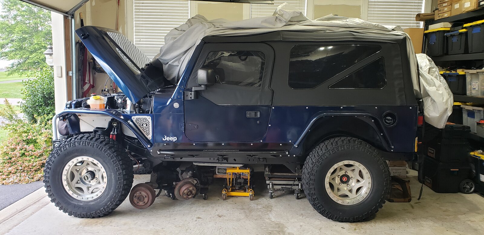 Now that I came across a deal I can't refuse, there is a relatively stock LJ inbound. If things work out, my plan would be to keep it close to stock and use that as my driver. The TJ would become the wheeler, but remain on 31" tires. Of course that depends on what I find when I start doing a thorough examination of the new purchase. In case you're thinking I'm crazy, which is possible, this is the normal status of the LJ, which has seen less than 2000 miles (It gets trailer-ed everywhere) in the last several years.