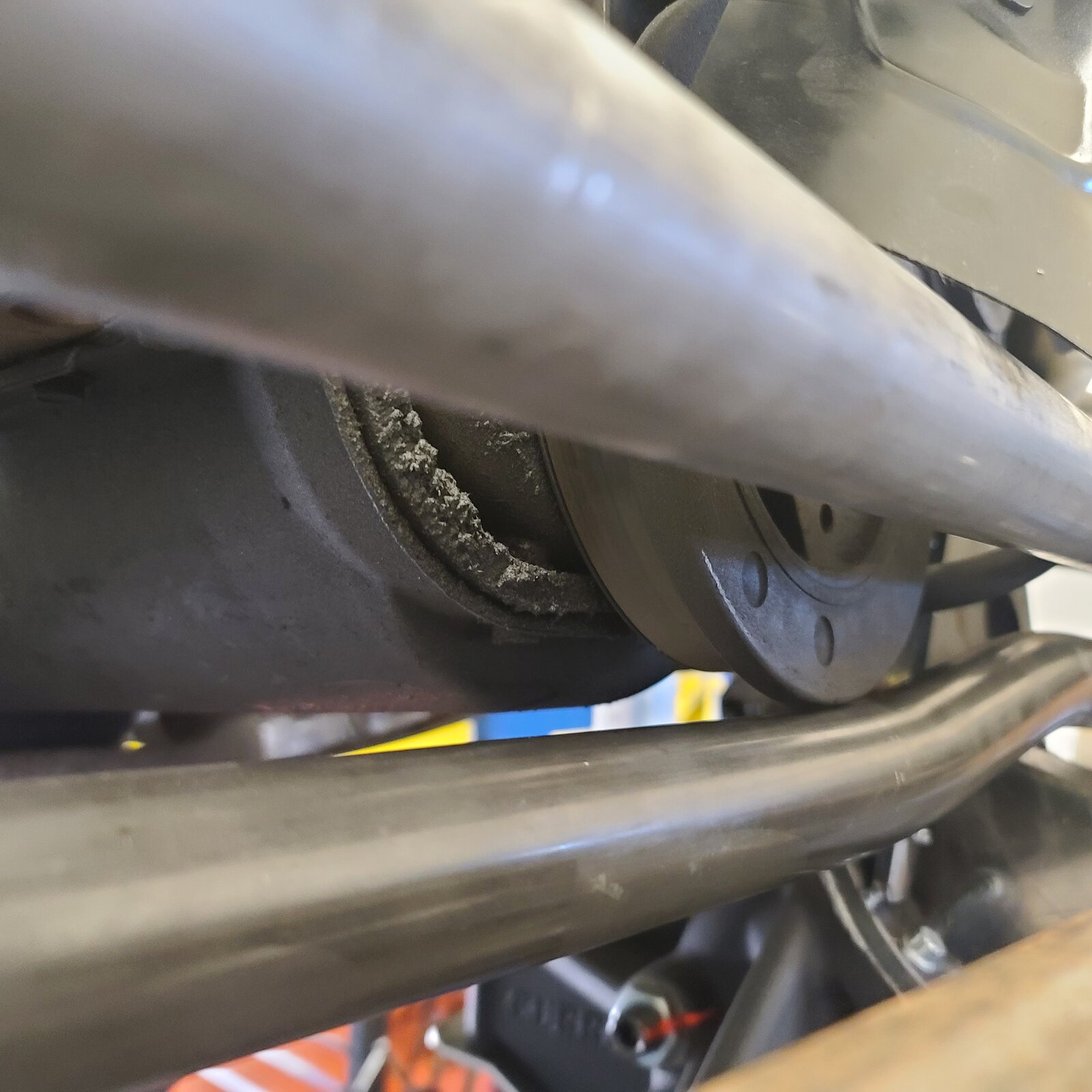 At full bump.... when the pitman arm hits the diff and the track bar hits the harmonic balancer, there is still 1.5" of shock shaft showing. Looking like I'll be bending the track bar or making a new one. We spent a bunch of time moving things around. If we pull it off the crank, it hits the steering. A motor mount lift could come into play but we aren't putting a body lift on and that won't move the pitman arm up.