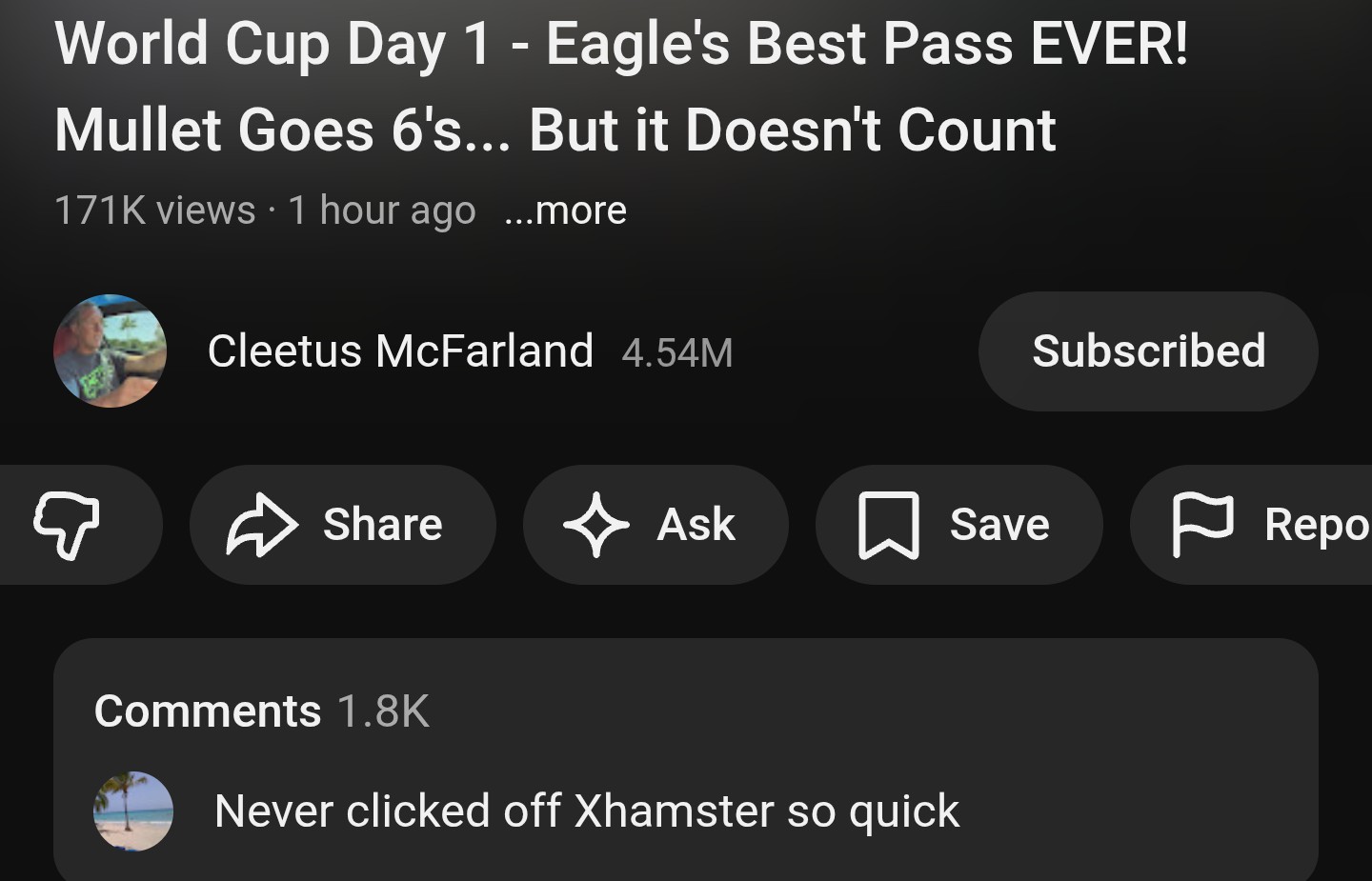 speeding_infraction said: Easily the funniest comment I've ever read on a cleetus video View attachment 653684 Click to expand... Hell yeah brother! Watching Cleet’s video now.