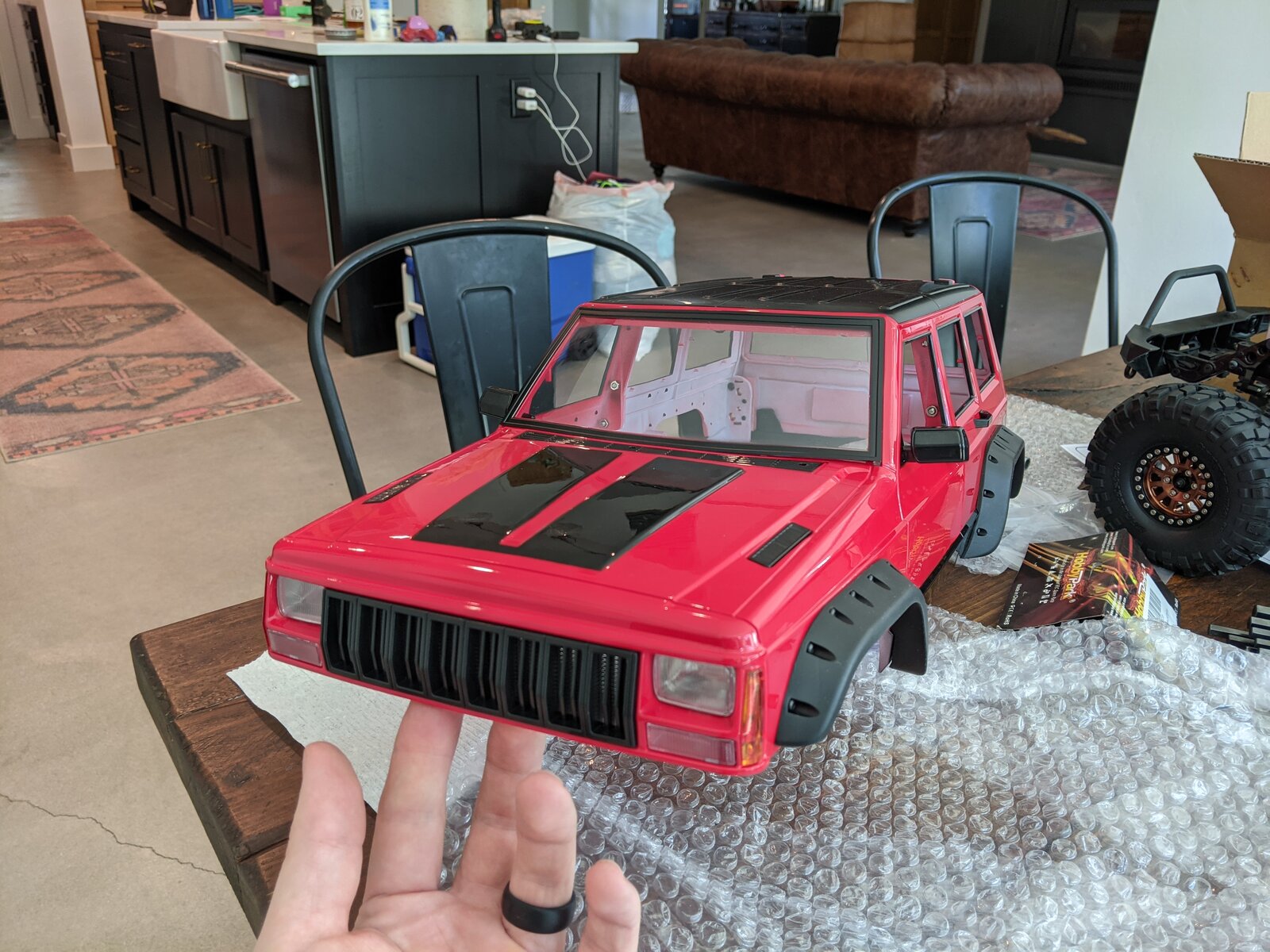 I've been assembling this hard body CJ but it looks so good I'm having second thoughts about mounting it. I flop and cartwheel down that wall so much it would have been destroyed by now, but the lexan truck body just takes it.