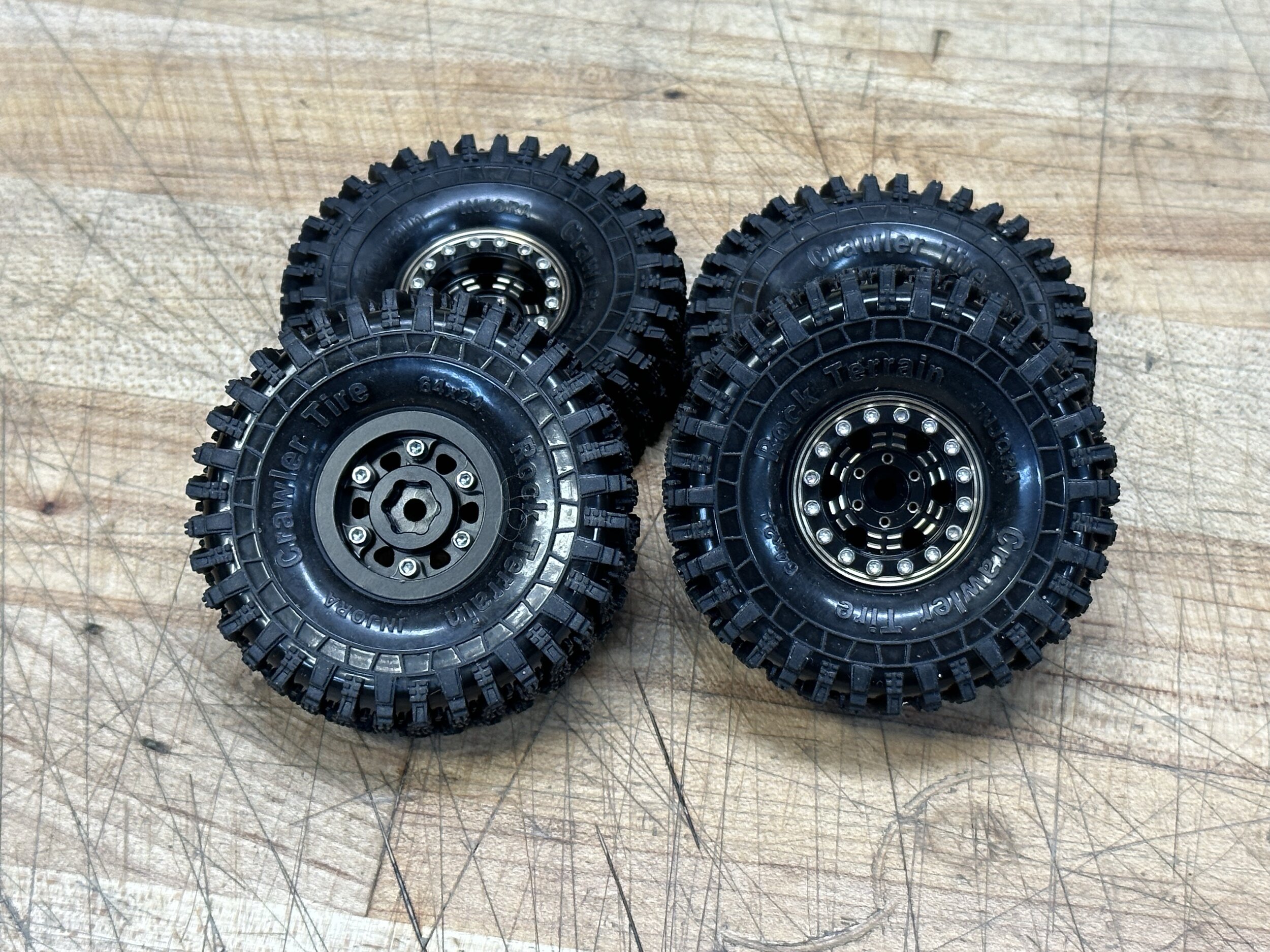 Wraith kit roller, all plastic OG AX10 trans, cheapest possible Amazon stainless driveshafts, stock Axial AE2 brushed ESC (has drag brake and programable), shitty brushed 27t Axial motor, Axial XR10 beadlocks with the internal weight setup (6oz each front wheel), crappy stock Axial Ripsaw tires (but sticky compound