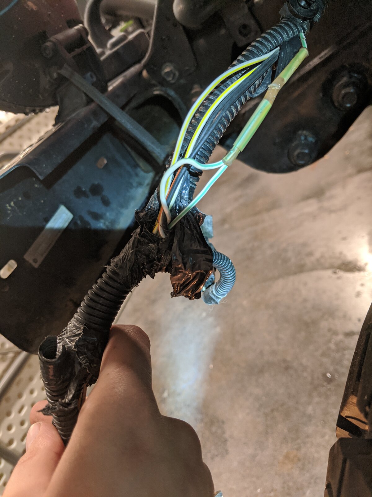 My left fender corner bulb does not turn on for anything. I know that the bulb works(tested it on the opposite side) and I know the bulb attachment (the thing the bulb goes into) works, cause I cut it off and did a temp splice through the attachment on the other side(please don't mock me to harshly I'm to cheap for a voltage meter right now haha). In the picture, the bent white/Light Green wire is for the corner.(also please ignore the cuts in the splice, they were my doing and have not affected anything)