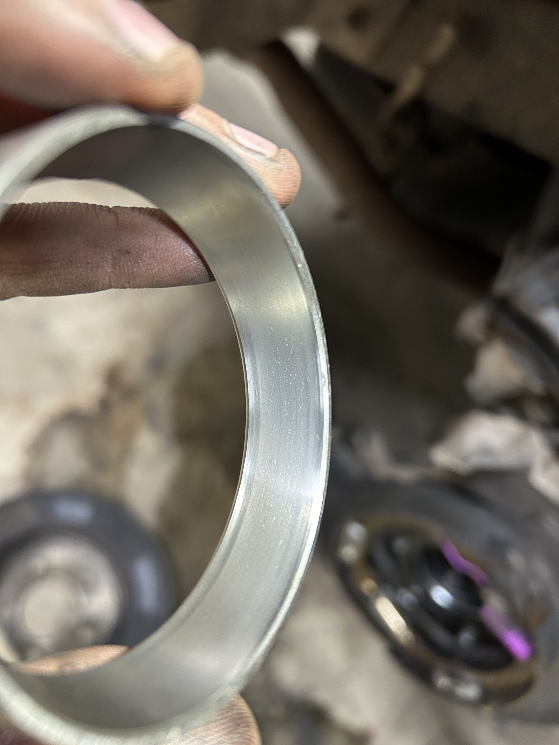 The bearing was for sure a cheap bearing, with less than 400 miles on it, its looking unhappy. Evidence of debris in it and early stages of spalling. Highly unlikely it would have survived more than 10,000 miles.