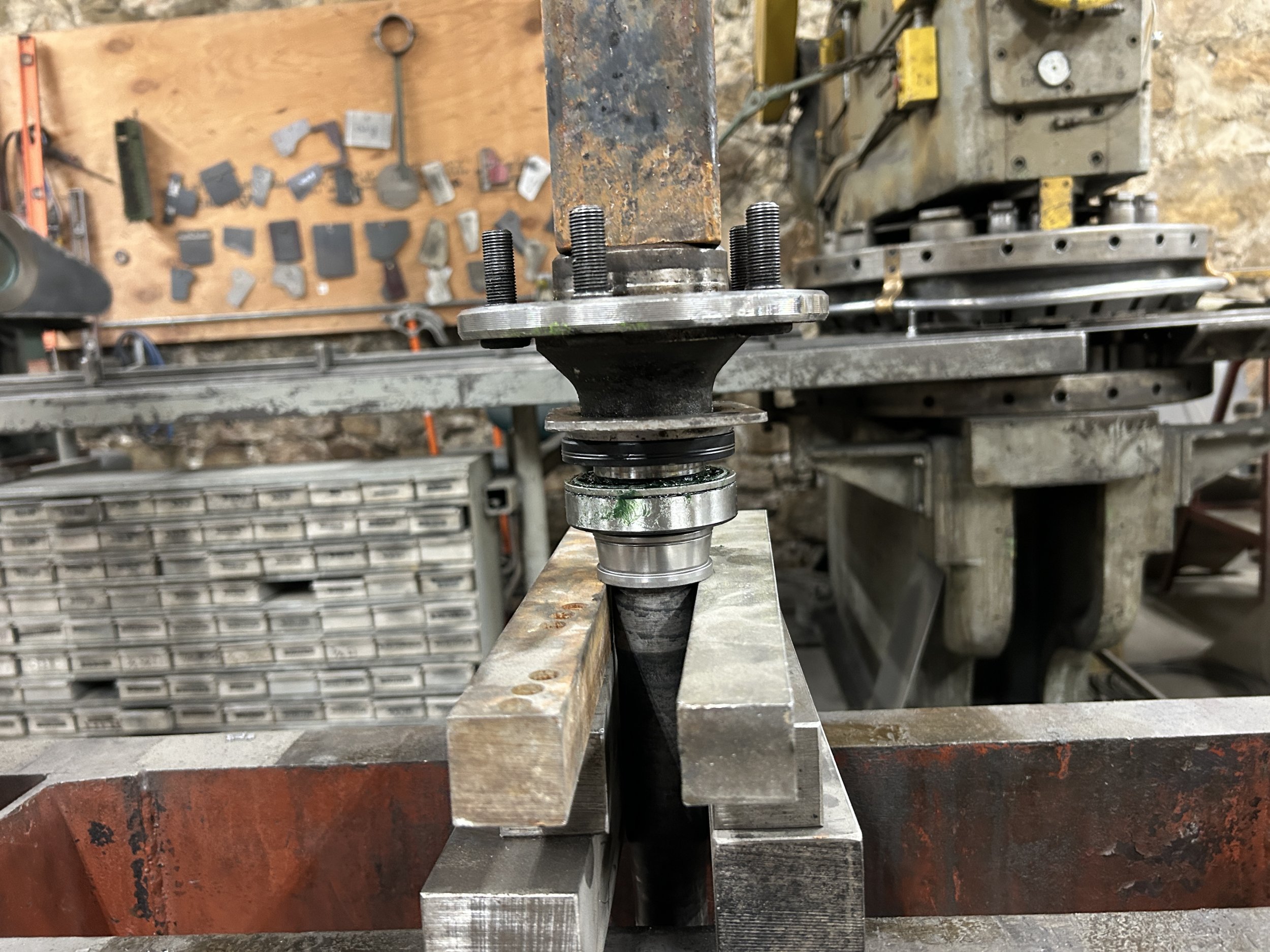 I went ahead a and pressed it all together. Luckily I was able to finish my other project enough to have it drivable, and so I used it to shuttle the axle and parts the 30 miles to the machine shop. Normally I'd just do the work there, but since the incident the space it limited. They had gotten the press working again a couple weeks ago.