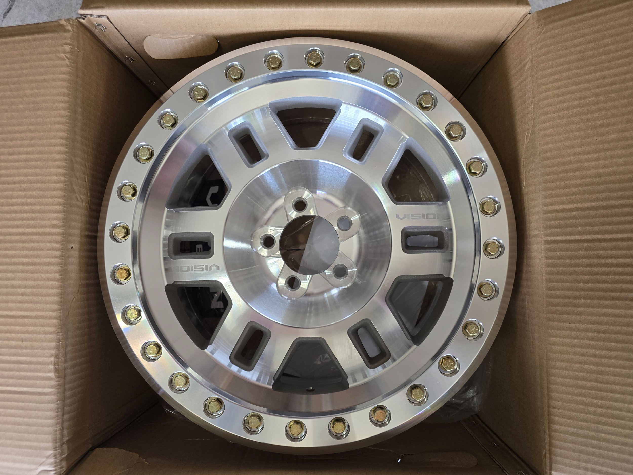 @SkylinesSuck said I have a wheel addiction. He might be right, because these were delivered today. These Vision bead lock wheels will be mated with a set of Falken Wildpeak A/T4W tires, in a 35x11.50R17 size. This new Falken tire is available with a C rating, and they've added a 3rd ply to the sidewall. I've run two sets of Falken A/T3W and have seen how well they perform in a wide range of conditions. The downside is, I'll have to wait until the end of April for the tires to be delivered.