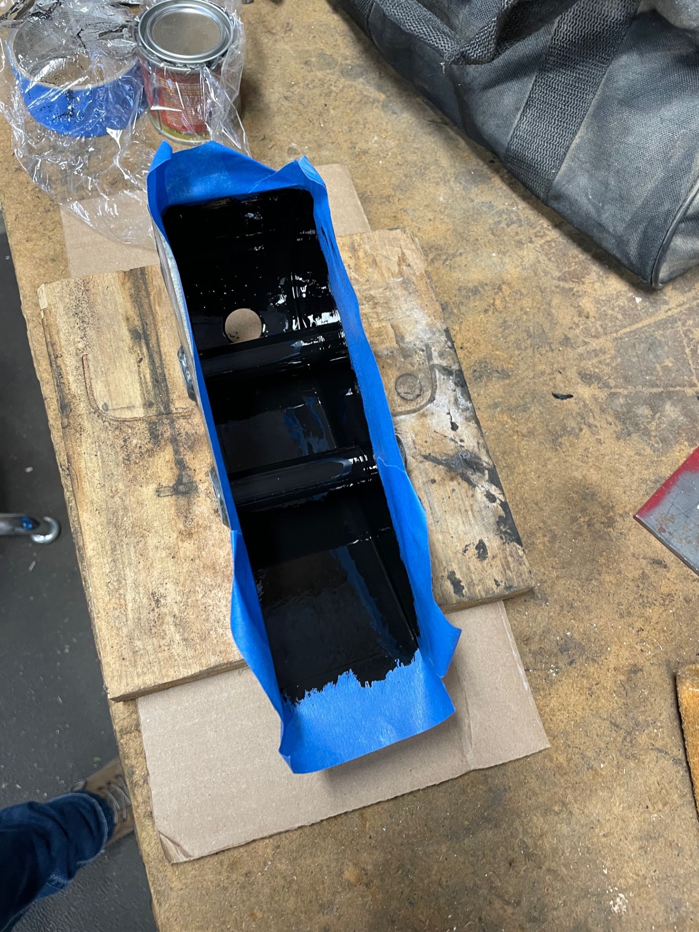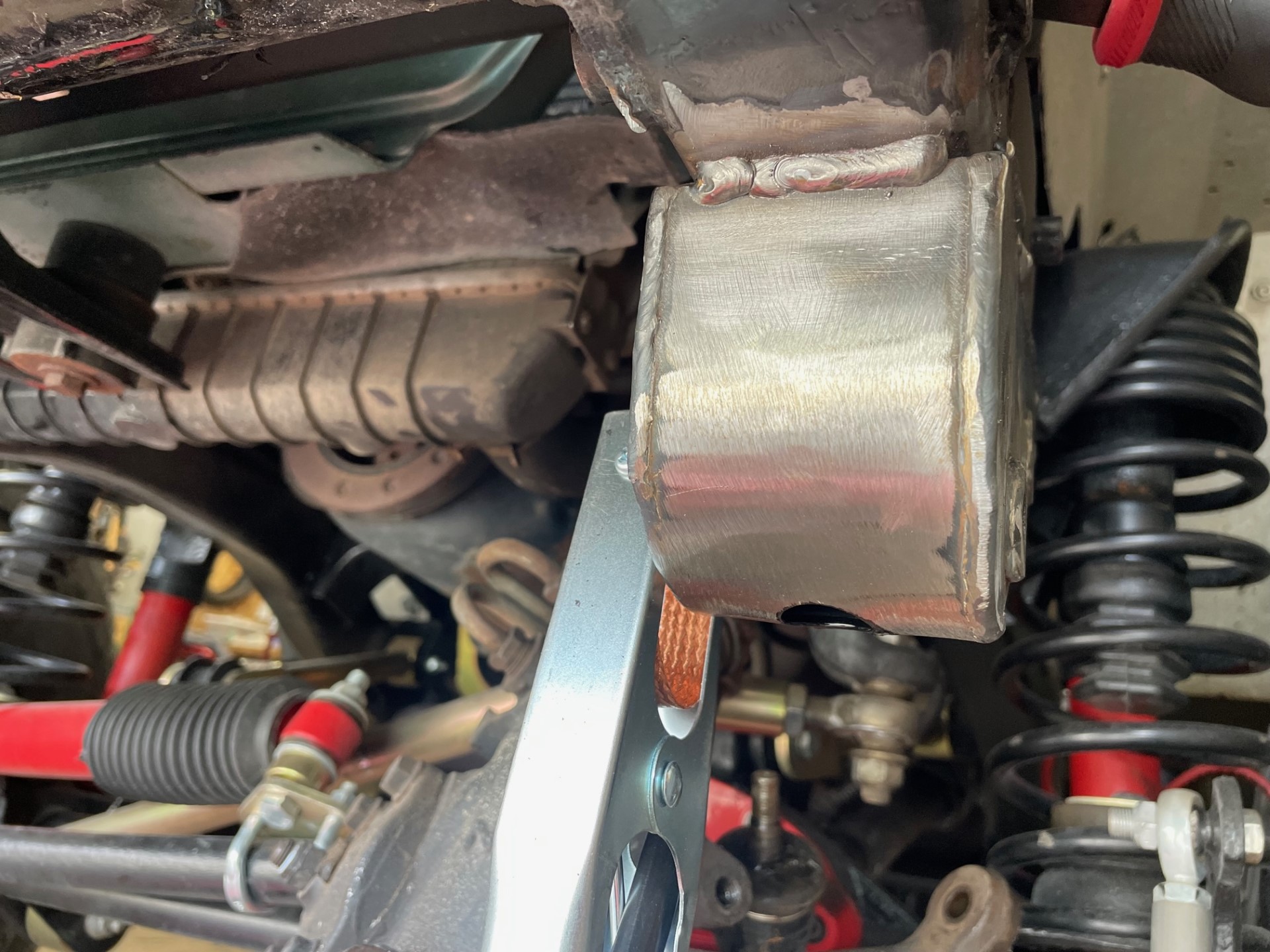 First, I coated the inside of the new bracket with POR15 (of course, I left some clean edges for the weld to stick to):