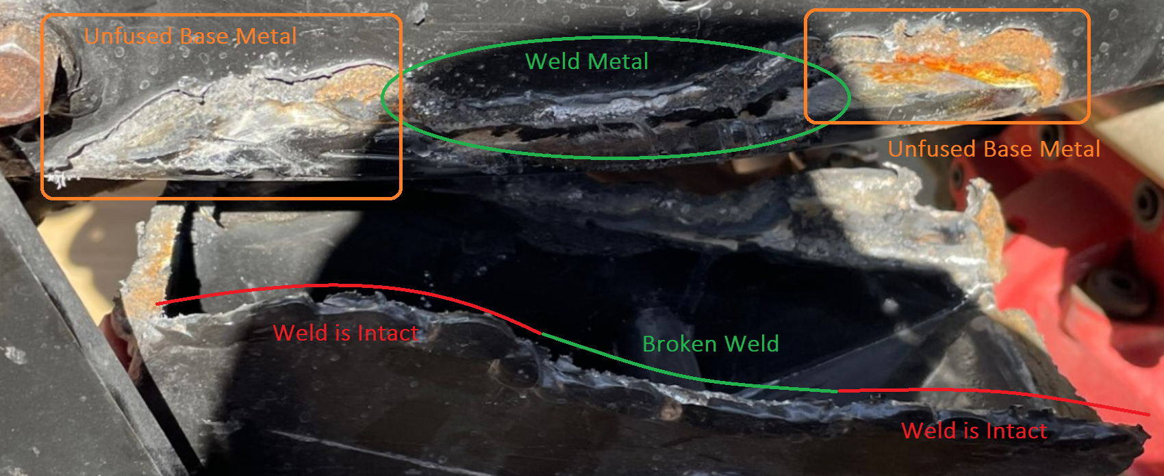 And staying true to my walk of shame.... here is the photo of the damage and broken 'weld':