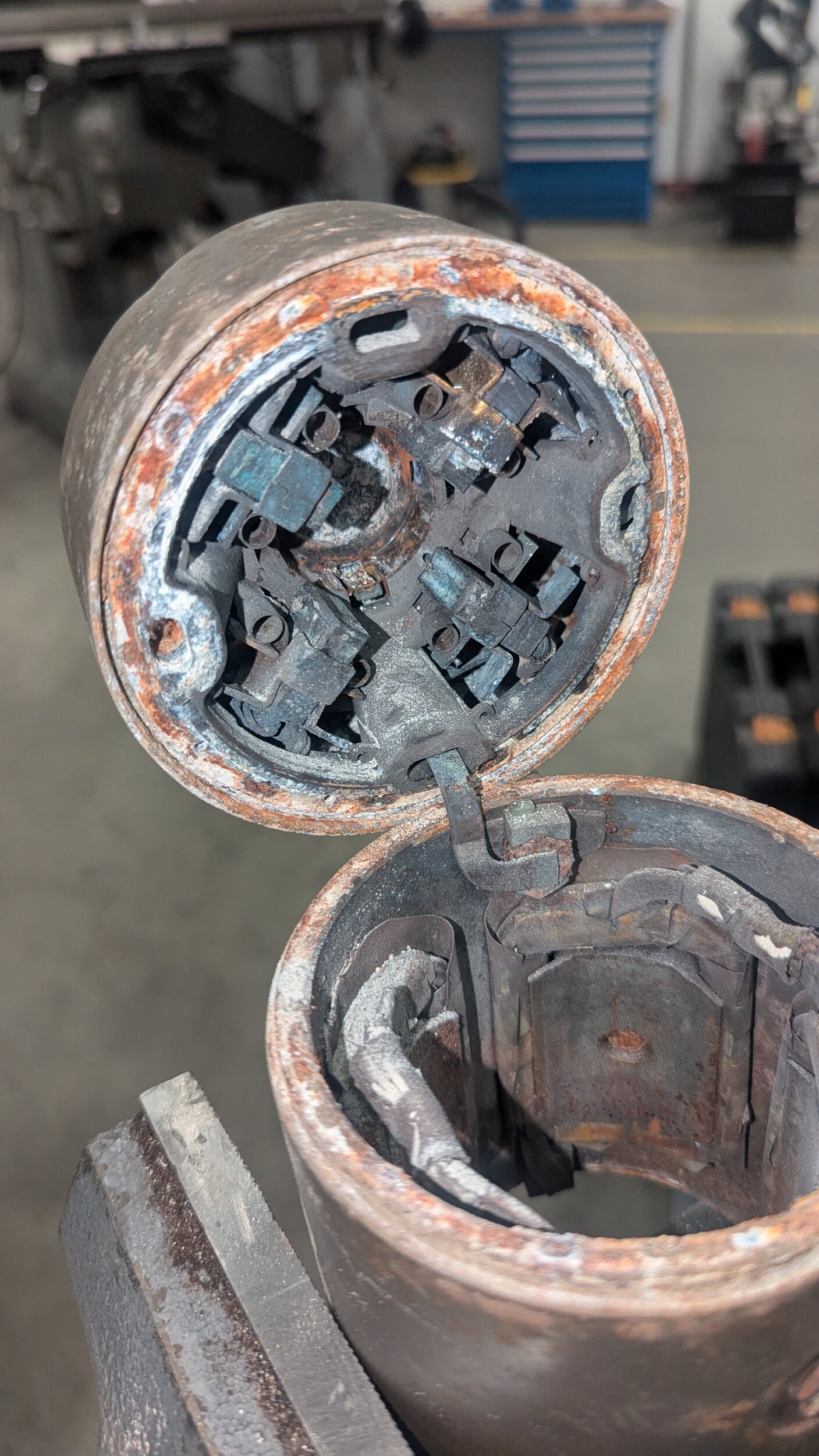 The left pic shows the original top of each part ( minimal initial corrosion), and the right shows where all the water pooled.