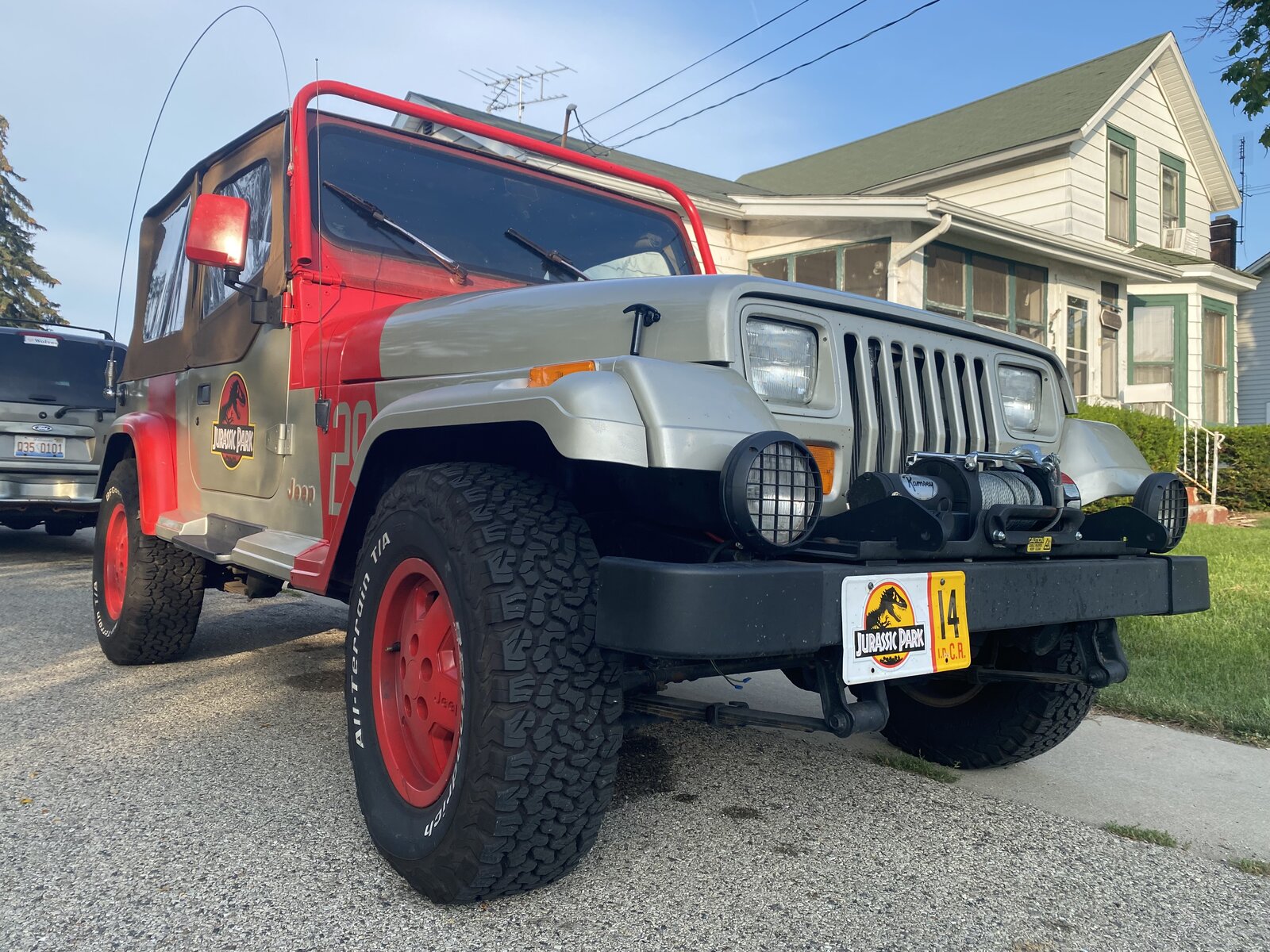 Upon arrival, the first thing I noticed was his Jeep...a pretty nice YJ all dressed up to go hunt dinosaurs.