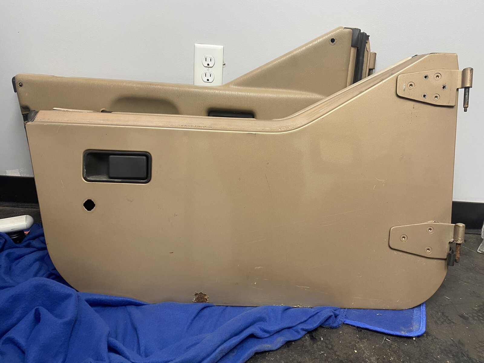 I honestly don't recall if he used to have a TJ before this and that is why he had these doors....or if he accidentally bought them for this project thinking they would fit. But he had them and wanted them gone, so for $200 I ended up with them, knowing that they would need some work. They hadn't been abused on the trails and the inner door cards were intact, so not a bad start.