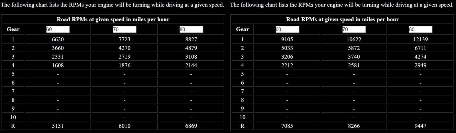 (assuming automatic trans) 3.73 on the left and 5.13 on the right courtesy of http://www.grimmjeeper.com/gears.html. overdrive at 80 mph with 5.13s puts you at ~2949 rpms. I've driven at 3000-3500 rpms on the freeway for hours at a time for the last ten years without any mechanical concerns.