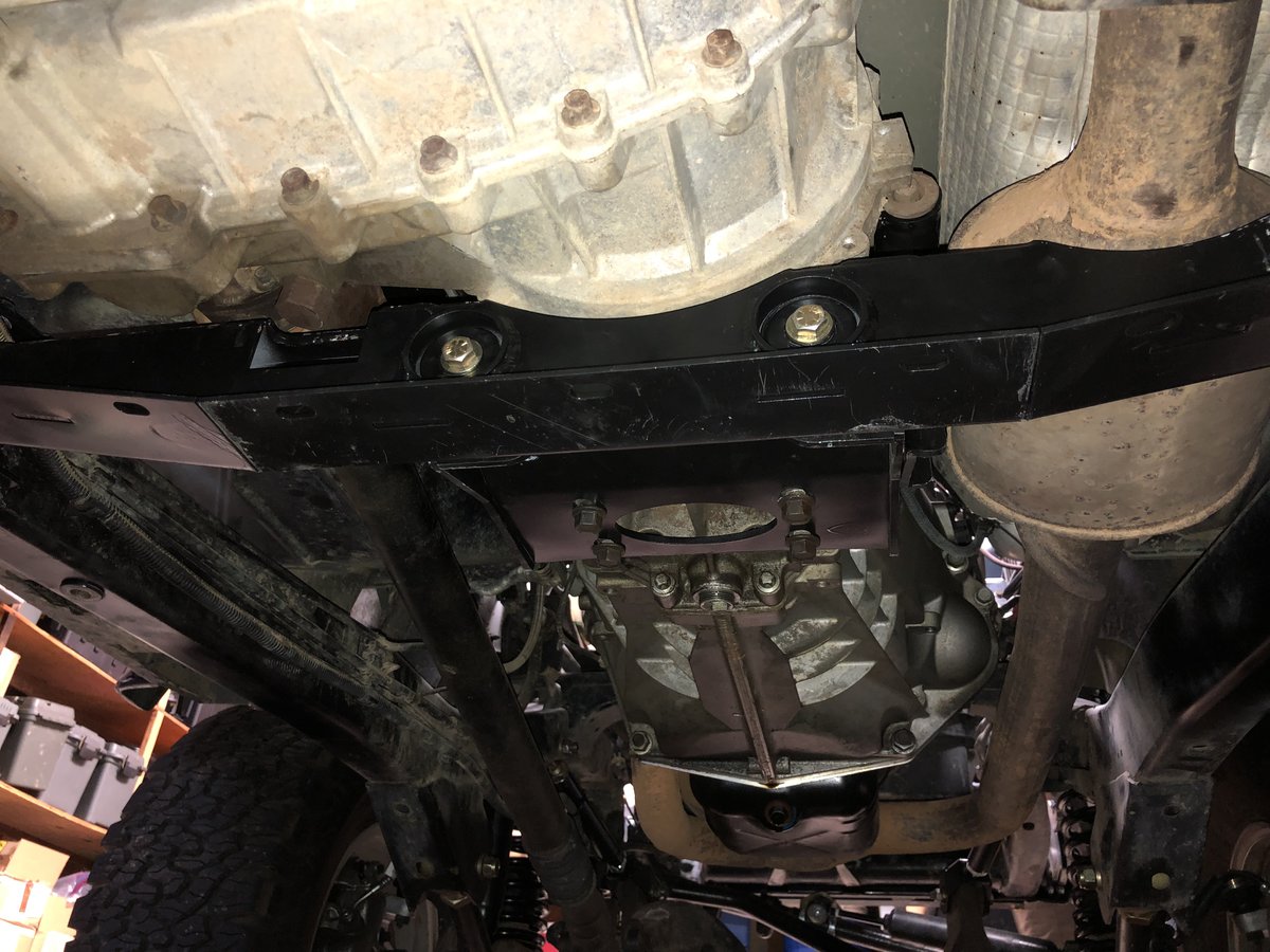 Some good progress today, I got the cross member installed. It took a lot of install and removing the cross member over and over but got it figured out.