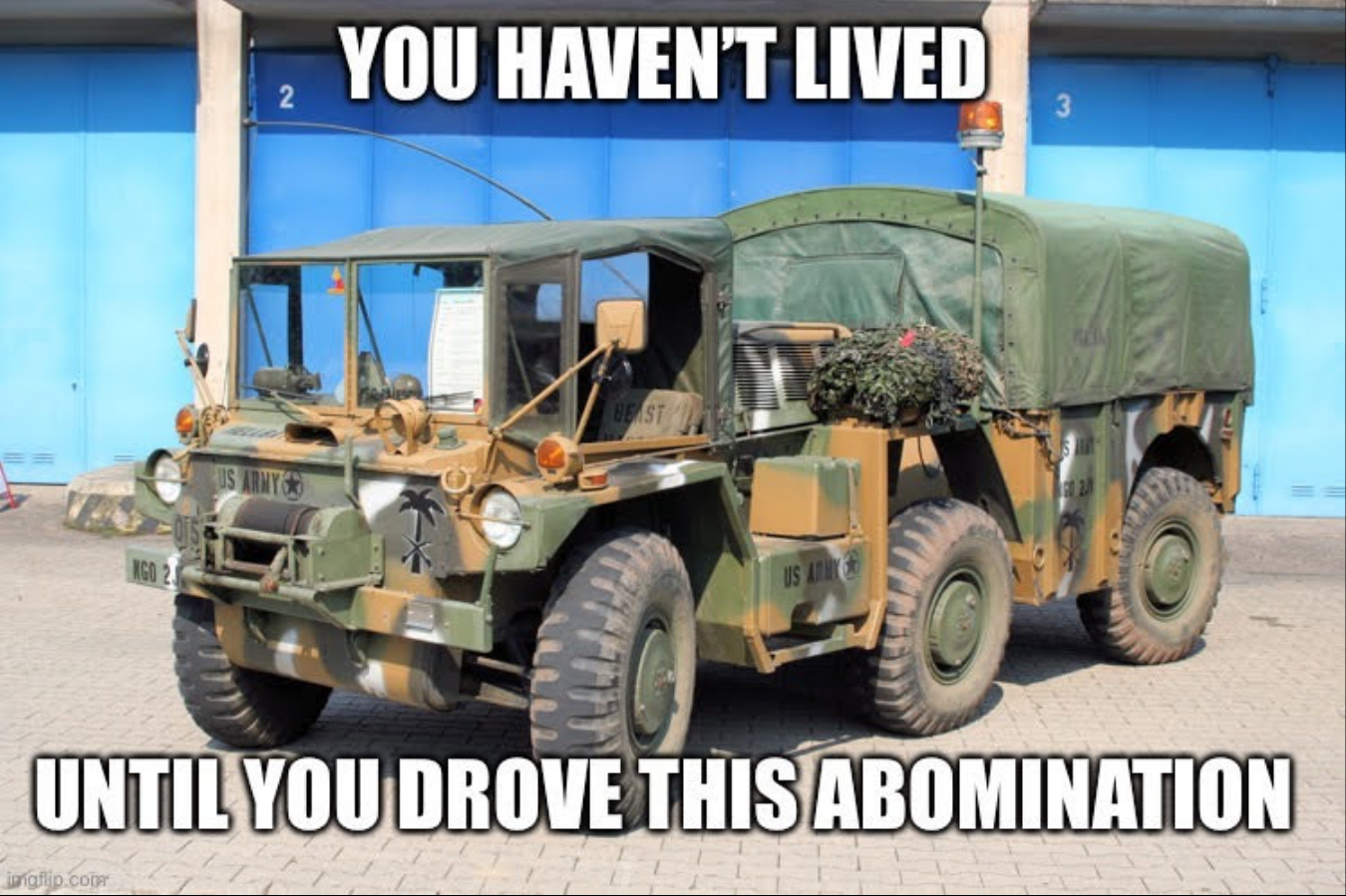 AirborneTexasRanger said: WTF is that thing? Click to expand... Gama Goat... Designed by a woman from Canada.... They would flip over just by looking at them. I had the privilege of driving them in Germany & AK.