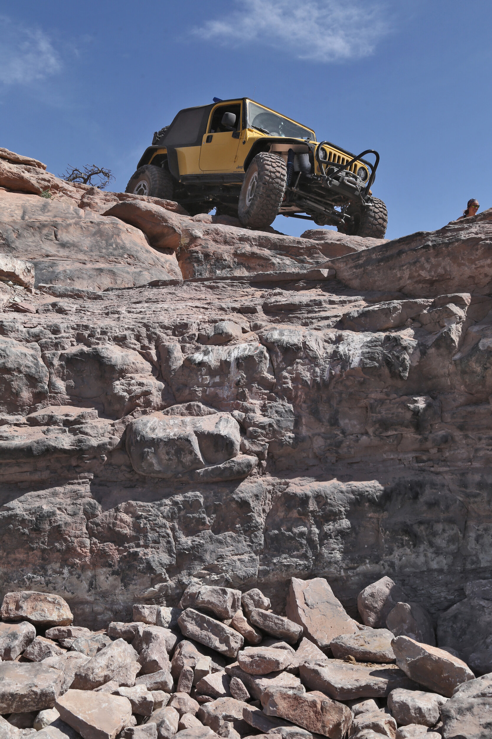 First trail ever, or just in Moab? The gatekeeper opening obstacle on Behind the Rocks is not a gimme, and many have rolled there. Good spotting will get you up.