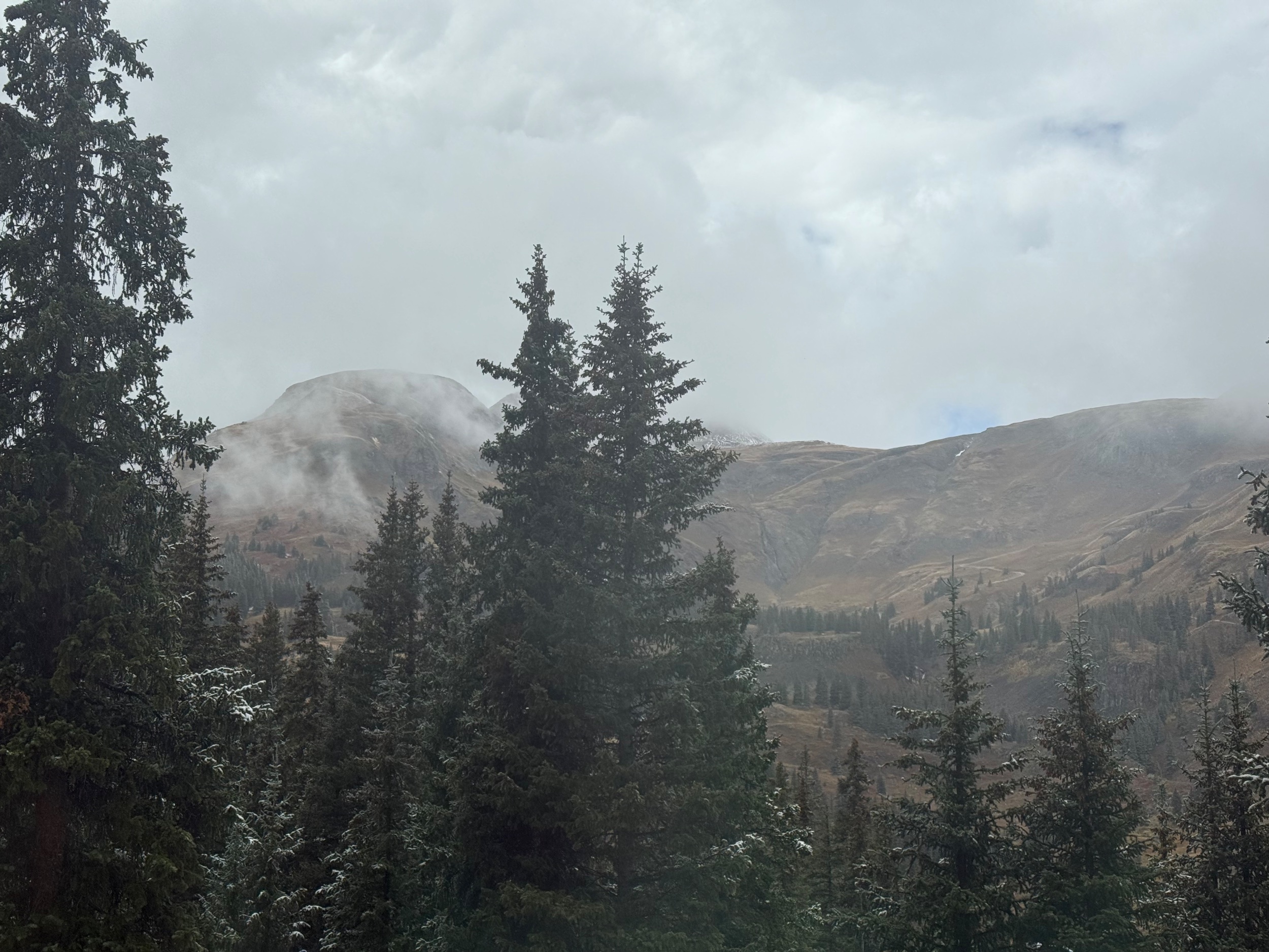 We wound up going over Black Bear and coming the long way via Telluride. Buddy hadn’t seen the changing aspens before. Was dumping snow on Red Mountain, made for a fun little segment! I’ll post pictures when I grab them off my camera.