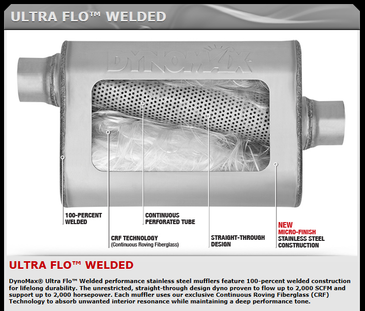 A bigger "Ultra Flo" will be somewhat of a gap filler between the turbo style and traditional glasspack. Bigger muffler body = more decibel absorption