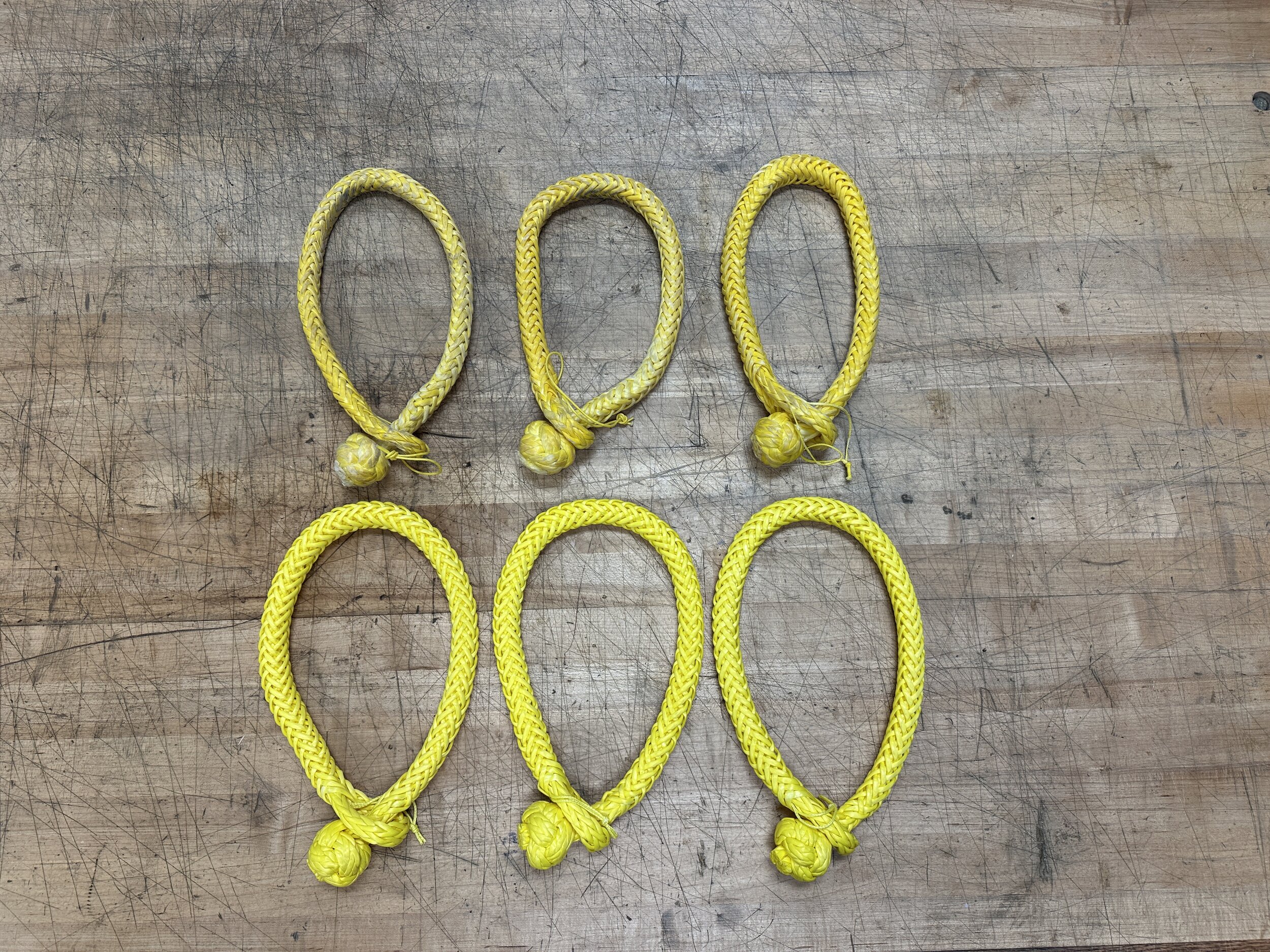 He told me he was not happy with the "hand" on the yellow compared to his other colors, and he was also not happy with how the knot came out due to the rope construction. He then sent me a shackle in green so I could see the difference he was describing.