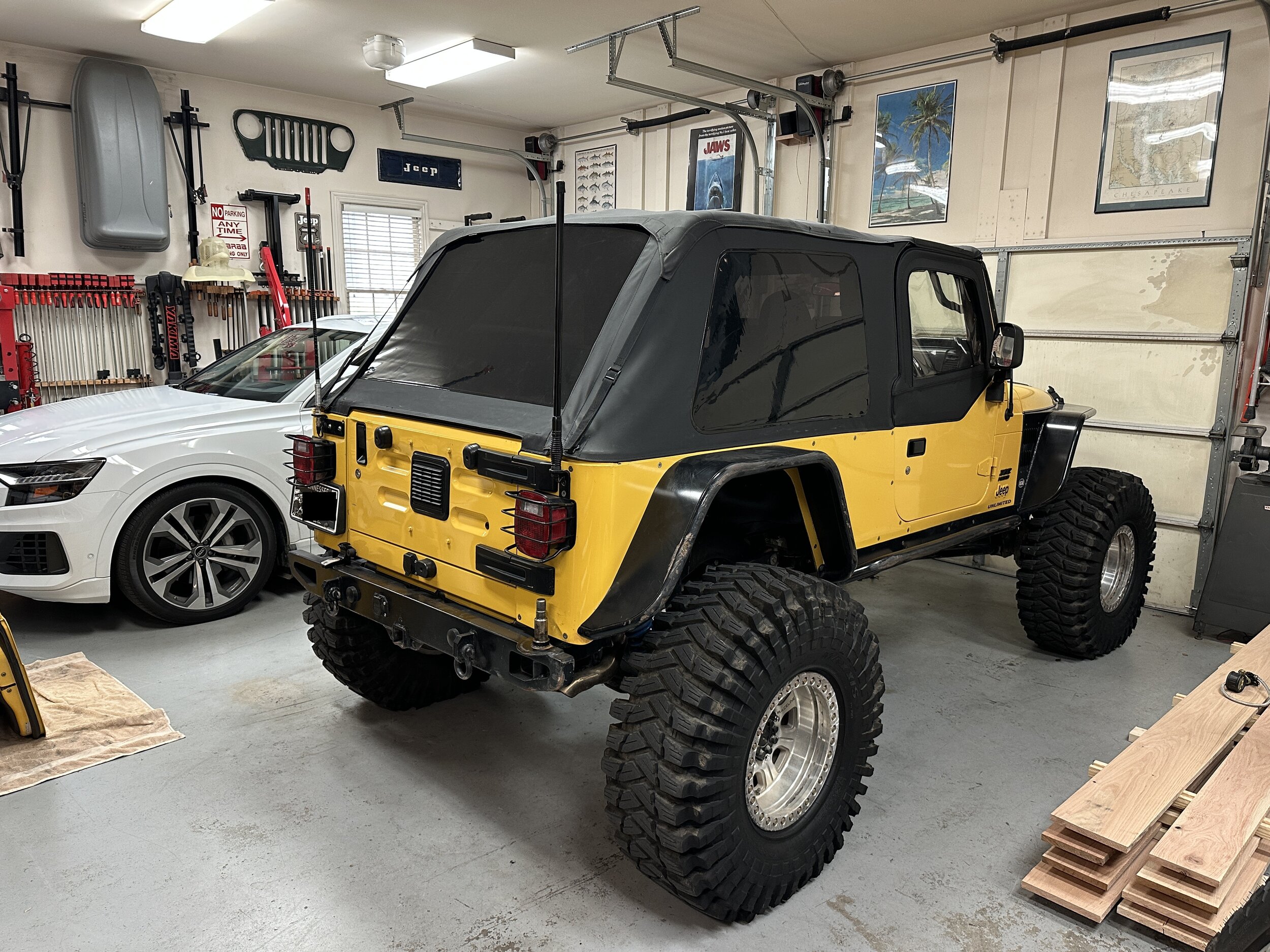 I meant to measure before pulling the spare, but got caught up in the moment. It did come up, but only a bit. It’s a good bit of weight. Probably over 200 pounds between the spare and the carrier.