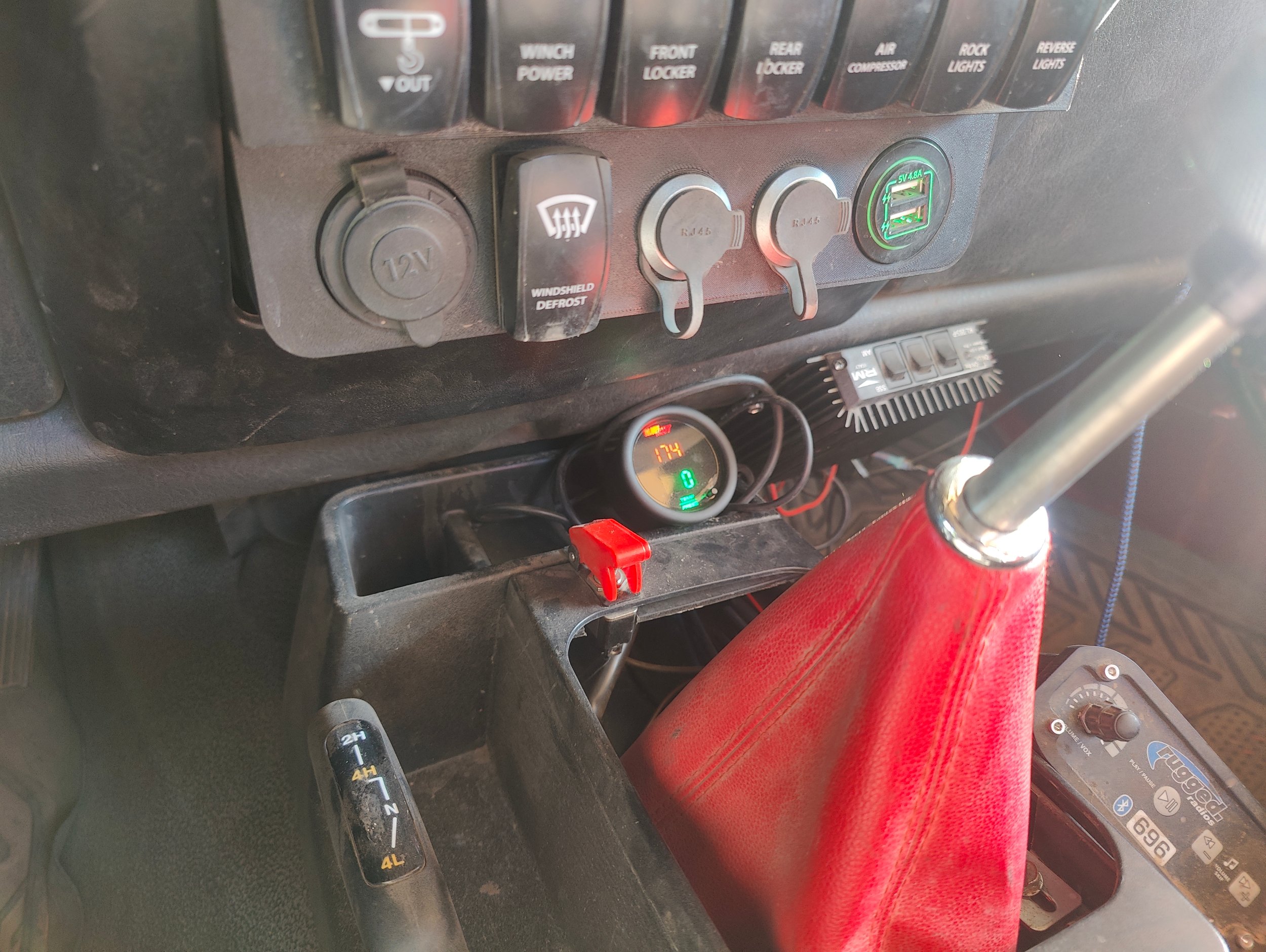 Battery...so our cheap Amazon F40C4TMP fridge...which was rear ended, and has endured mud and dust...fan whines on the compressor but a healthy spray of WD-40 can shut it up for a bit. However every time the fridge kicked on the battery (Jeep not running) would drop from 12.3 to 11.7 and the fridge fail safe would shut off the compressor. Fridge had a voltage gauge... assuming it's accurate. So basically we had to keep the Jeep running to get the fridge to stay running. I bought a 100 w solar panel in Placerville at Harbor Freight...but I hooked up the regulator wrong and ended up driving it over the trail buried under our gear because it was useless.