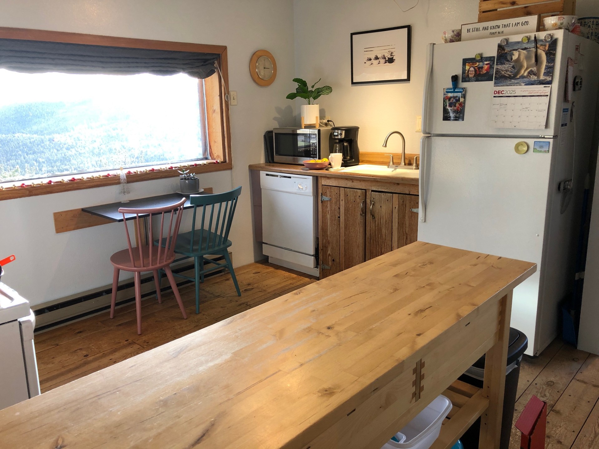 We do have an IKEA folding wall table and butcher block work surface with drawers . We are quite content with minimal stuff , God has blessed me with a wonderful wife who is gorgeous and my best friend .