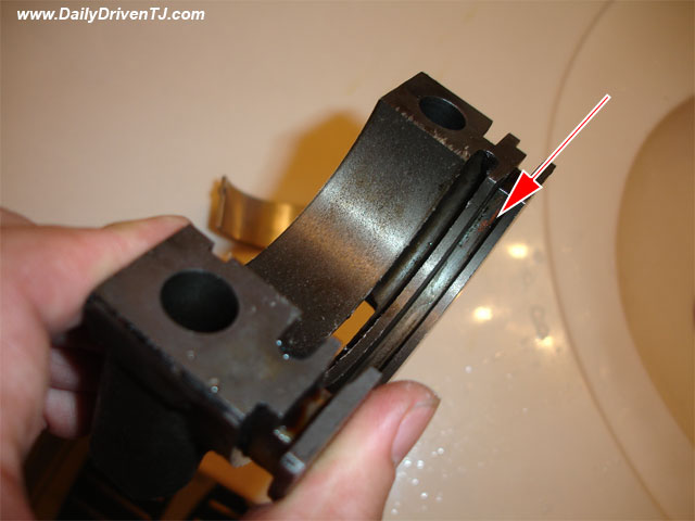 Clean the engine block where the bearing cap mates against free of any residue whatsoever! This cannot be stressed enough! Clean ANY mating surface ABSOLUTELY free of any old sealant and any type of residue!! Remember you have to do this WITHOUT damaging/scoring the metal!