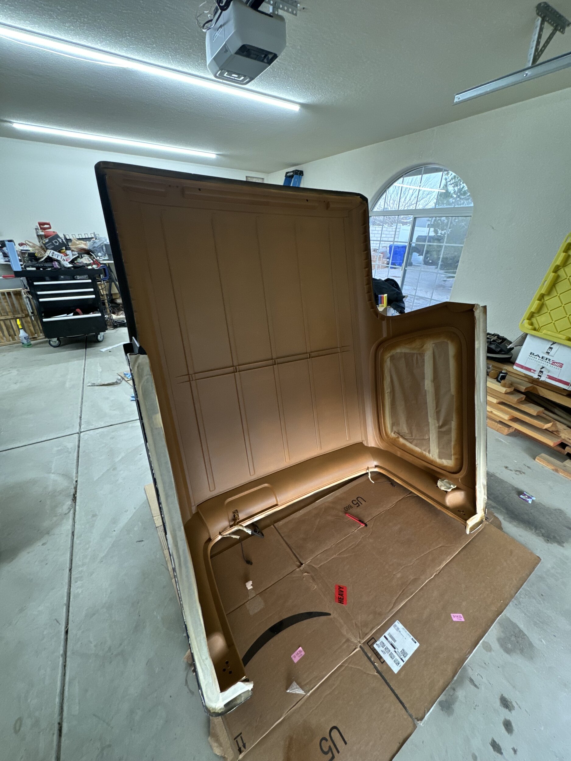 I started with the interior of the top, since I have a Sahara I wanted to tie the top interior color into the interior of the truck. To do this, I decided to spray it using