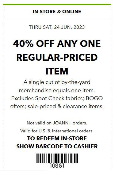 I just checked Joann and there's a 40% coupon right now. You have to be aware of what else might be on sale, for example if this fabric was on sale for 10% off, they won't honor the coupon on it.