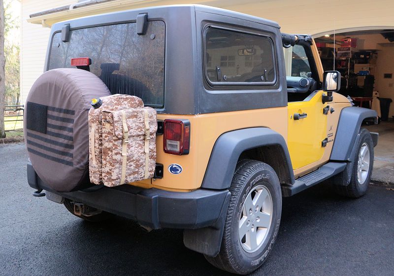 Mounted on the tailgate of my son's JK 2dr (we were also testing the swing-up hardtop windows I was in the process of designing at the time):