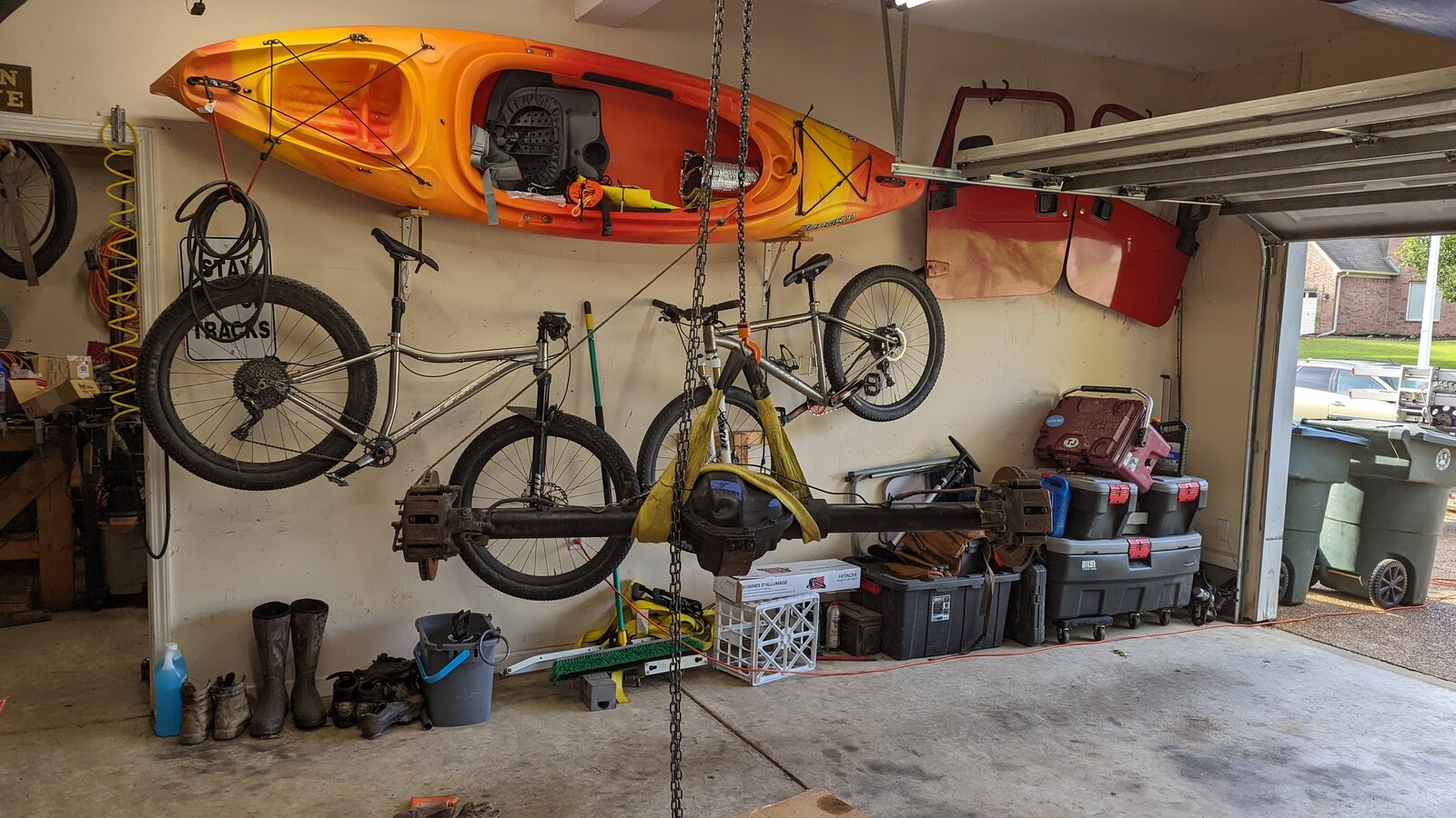 I already installed the new Adam's shaft, fixed the rear sway bar link, and went ahead and removed the stock rear axle shaft that I installed after the Great American Crawl trip and reinstalled the chromoly shaft (with new bearing and seal). I also ordered a new tire, but not sure when it will arrive.