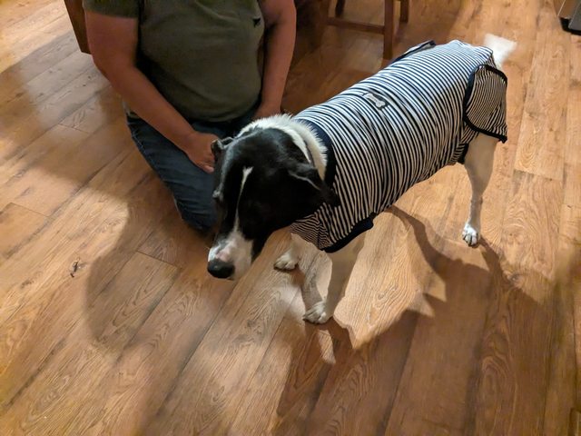 He’s banned from climbing stairs until he get the staples out, so I have been sleeping on the couches for the last week just keep an eye on him. His recovery is going really well. You’d never know he has had his middle opened up. He’s back to his happy go lucky self.