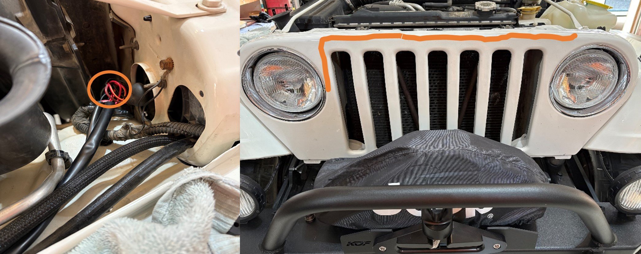 For harness routing I found a hole just below the pass side headlight opening in the core support (next to the radiator) to pass the driver side plug/harness branch through and routed it along the top of the grill and zip tied it to the harness that is already there. It is completely hidden and the routing turned out great. I am also looking for a plug/cap or something to cover up the driver side factory H/L connector that is no longer used but haven’t found anything yet.