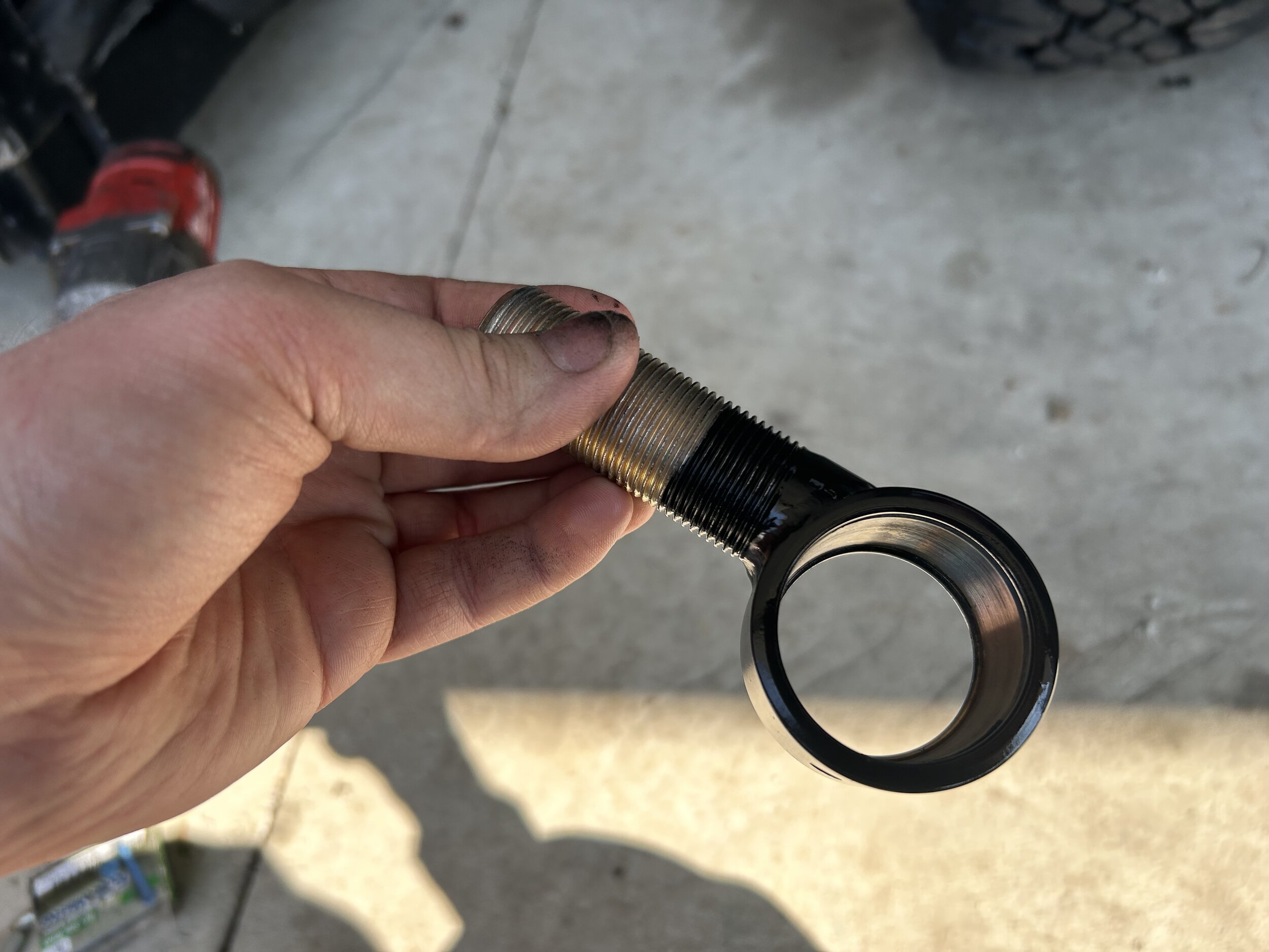 So I made an offset JJ with one of weldable housings and a 1”-14 bolt that I took an end-mill to. I tried to swap it out today but I think the threads are a little messed up since I could not easilly rotate it off. I have a trip next week so I wont be swapping it yet since I dont want risk completely ruining the track bar just before my trip. After I get back, what ever happens…happens.