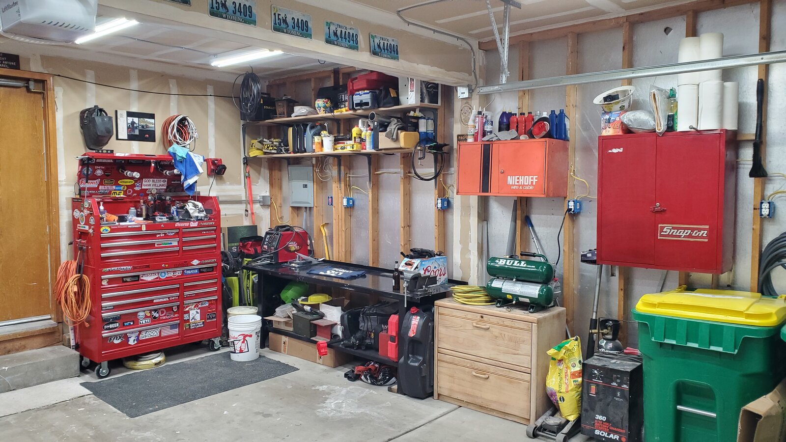 They're beat to hell but they still serve their purpose. I have all my smaller and consumable items stuffed in there for now. My last garage was a single car and I learned that to keep any usable space, you have to get everything off the floor and either on a shelf or in a cabinet.