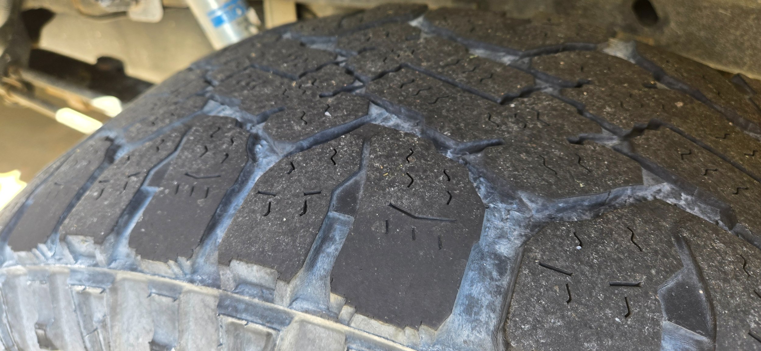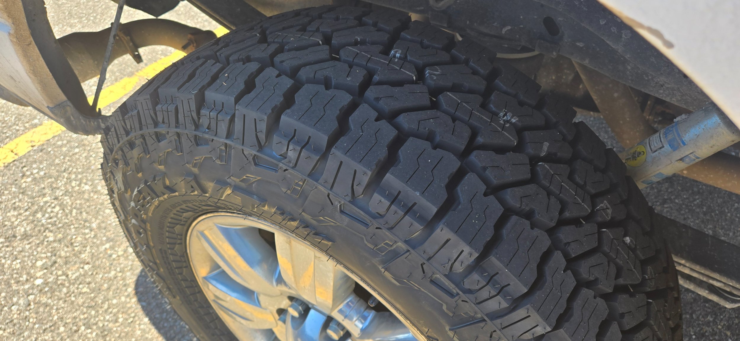 New shoes on the DD. Falcon Wildpeak AT4Ws. These replaced the worn out duratracs. The 3 mile drive home and these are very quiet. I'll get some highway speeds in this evening. The duratracs had 67k miles on them and honestly, probably should have been replaced 10k miles ago. They are a great tire, but I was ready to try something new. The AT4Ws are slightly narrower, and slightly heavier.
