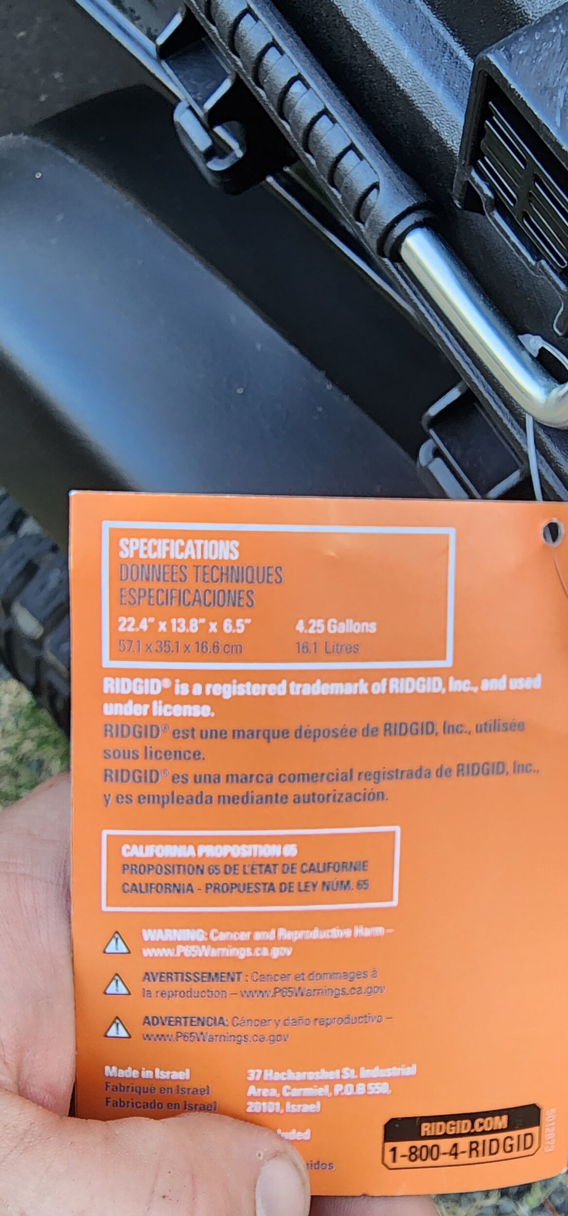 Ridgid Tool box at Home Depot - IP65 rated against the elements such as water and dust