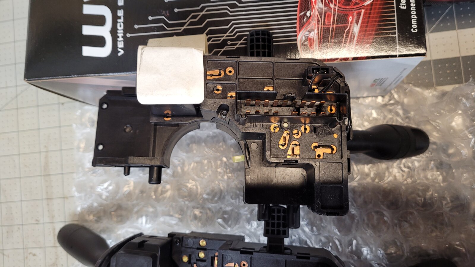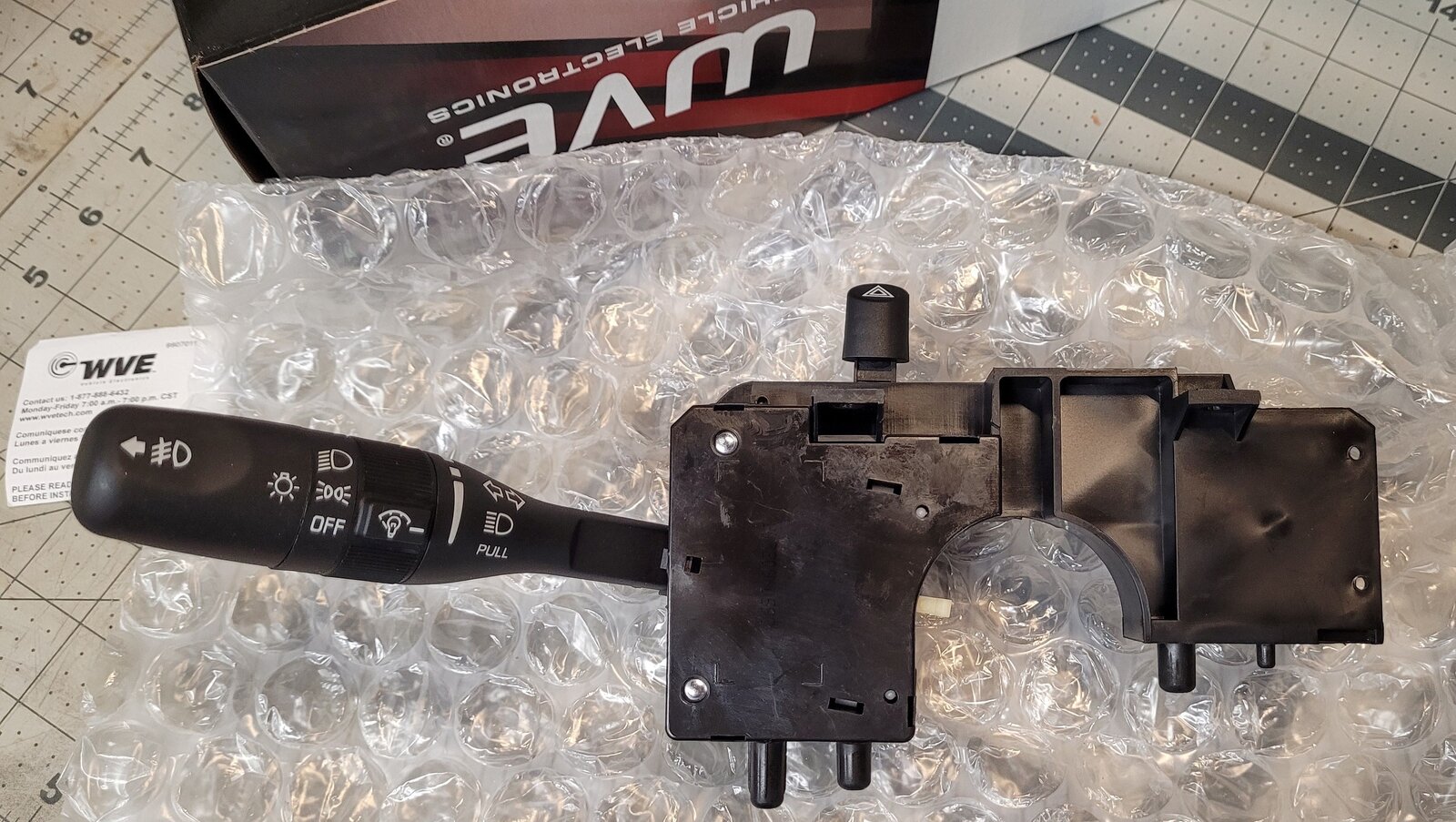 I recently figured out I could cancel the beeping if I lifted the turn signal like I was about to make a right turn. However, not wanting to have a major short and seriously damage something, I went on the safe side and bought both parts (switch and connector) before I even looked in the steering column. I went to Rock Auto and purchased WVE brand parts. Details on WVE stuff is sparse so I figured I'd add some detail and pictures.