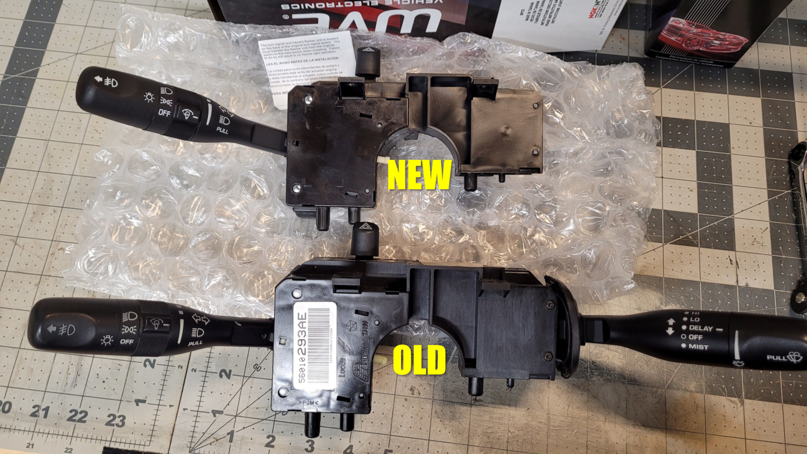 Here are the old (washer switch) and new (multi-switch) parts assembled:
